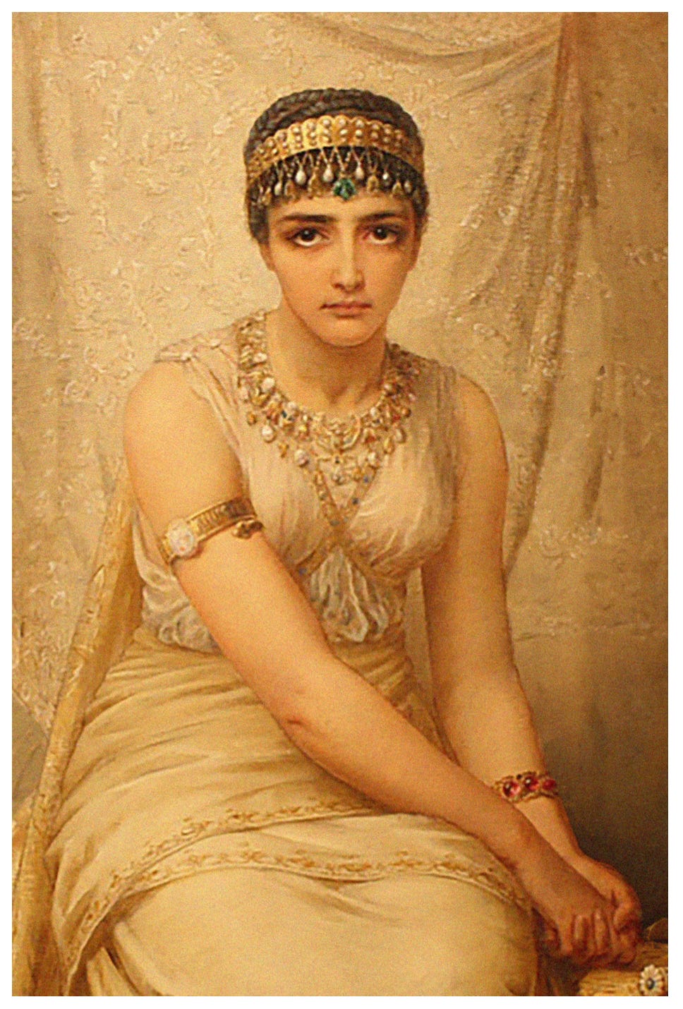 As anotações da professora nunca mencionaram que essa imagem, recortada de uma pintura de 1878 de Edwin Long , não era resultado de uma sessão de retratos , mas sim criada do nada, porque ela não era real . As anotações continuavam dizendo que a Bíblia descrevia Ester como alguém “que foi escolhida pelo rei da Pérsia para ser rainha”... como se a menção dela na Bíblia comprovasse isso.